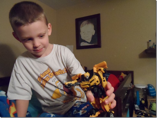 Here is Stephen all tucked in. He is holding his little light that he leaves on to fall asleep with.